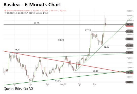 bis zur 100,00 CHF-Marke auszudehnen. Im Bereich dieses wichtigen Kursniveaus wäre eine Zwischenkonsolidierung