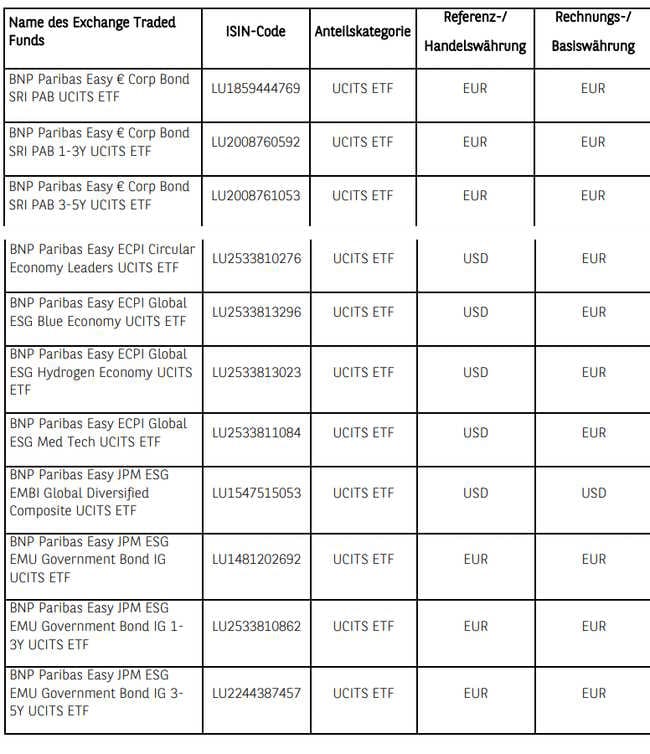 Die folgenden BNP Paribas Easy ETFs wurden am 18. April 2024 an der Börse kotiert: