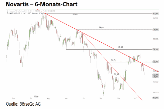 Rückblick: Die Aktien von Novartis bewegten sich bis Juli2015 stark nach oben, um ausgehend von der 103,20 CHFMarkeeine Korrekturbewegung einzuleiten.
