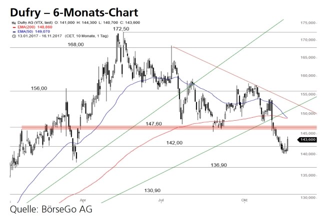 147,60 CHF. Dort könnten die Bären den nächsten Ausverkauf starten und die Aktien unter die 142,00 CHF-Marke