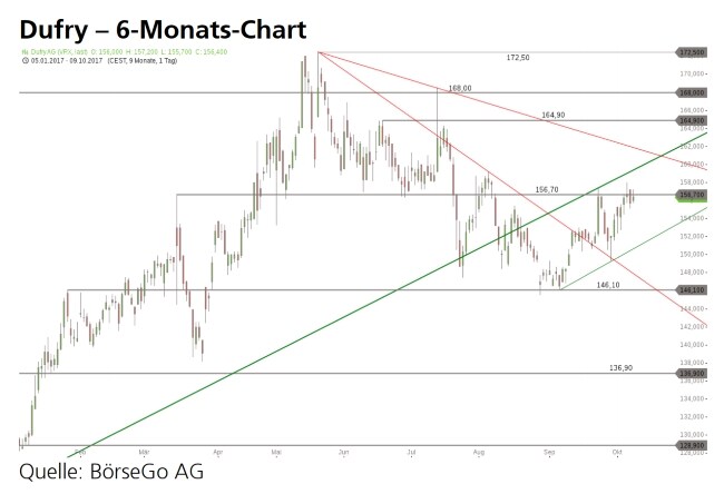 sich Dufry auch oberhalb der 168,00 CHF-Marke halten und den