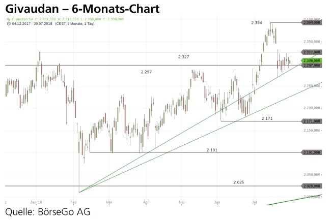 Rückblick: Bei Givaudan kam es nach einem Hoch bei 2.327 CHF ab Anfang Januar 2018 zu einer Korrektur der starken Rally.