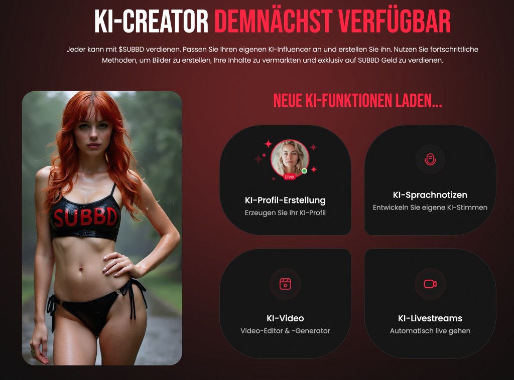 Der Token ist kein „Bitcoin-Ersatz“ und auch kein Makro-Hedge, sondern eher ein spekulativer Satellit. SUBBD wird im Kern so erzählt: Creator sollen über eine Plattform mit KI-Funktionen ihre Inhalte effizienter produzieren, besser monetarisieren und die Fan-Beziehung direkter gestalten. Wer so etwas attraktiv findet, schaut sich SUBBD meist nicht wegen Charttechnik an, sondern wegen Produkt-Story und Community-Aufbau.