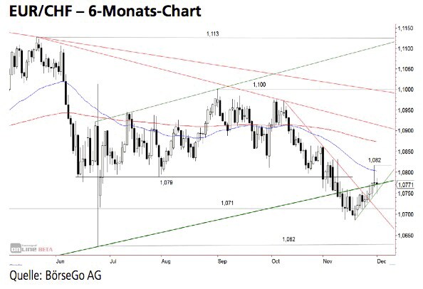 Währungspaar weiter erholen kann und auch die 1,082 CHF-Marke überwindet, könnte sich der Bruch des langfristigen