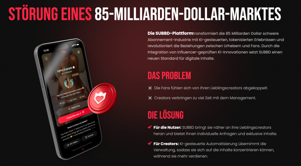 Die Botschaft des Marktes ist eindeutig. Infrastruktur und Anwendungsfälle, die Web3-Technologie massentauglich machen, stehen vor einem möglichen Ausbruch. Besonders die “Creator Economy”, ein 85-Milliarden-Dollar-Markt, gilt als reif für Disruption durch dezentrale Lösungen. Genau hier positioniert sich SUBBD Token ($SUBBD). Das Projekt (bisher eher unter dem Radar) zielt darauf ab, die Lücke zwischen veralteten Web2-Plattformen und moderner KI-gestützter Content-Erstellung zu schliessen – und zieht im Presale bereits signifikantes Kapital an.