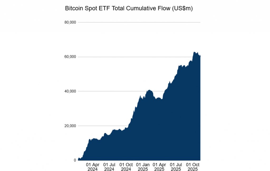 Bei den ETFs ist noch kein klarer Abschwung erkennbar, Quelle: https://farside.co.uk/btc