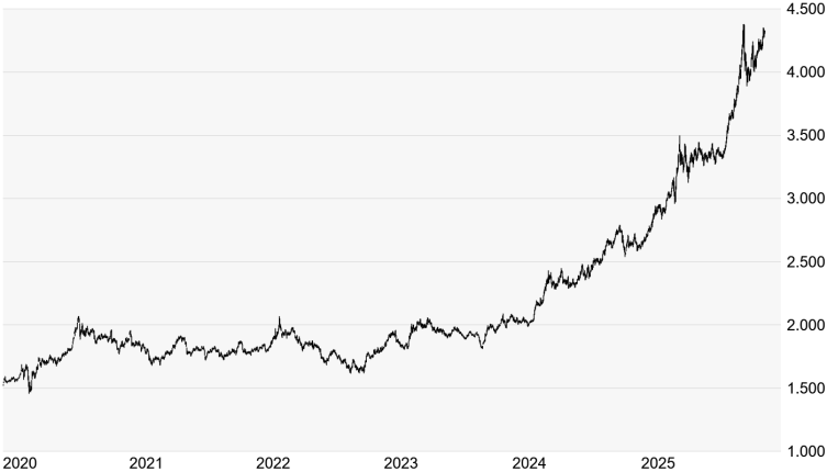 Der Goldpreis hatte sich in den vergangenen Tagen seinem Rekordhoch vom Oktober bei 4.380 US-Dollar stark angenähert. Im Vorfeld wichtiger Daten vom US-Arbeitsmarkt legte der Preis des Edelmetalls jedoch eine kleine Verschnaufpause ein. In den frühen Morgenstunden zieht der Goldpreis wieder leicht auf 4.339 Dollar an, womit sich das Rekordhoch wieder auf Schlagdistanz befindet. Die gestern mit Verspätung veröffentlichten Berichte für Oktober und November zeigten unter dem Strich einen