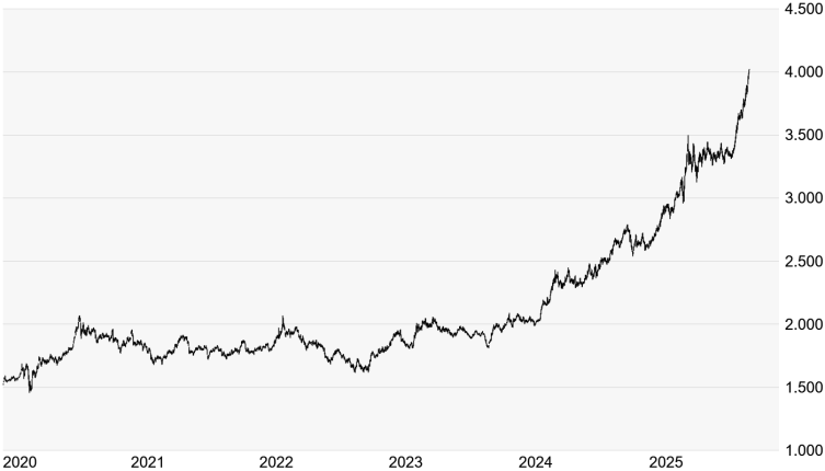 Eine der wenigen Konstanten an den Finanzmärkten scheint derzeit der Goldpreis zu sein. Seit Wochen kennt der Preis des Edelmetalls nur eine Richtung: nach oben. Notierte das gelbliche Metall Mitte August noch bei etwa 3.300 US-Dollar, so stürmt es seit Wochen nahezu ohne Zwischenstopp auf die Marke von 4.000 Dollar zu. In den frühen Morgenstunden war es dann soweit - der Goldpreis kletterte über die runde Marke und bis auf 4.019 Dollar nach oben. Die Gründe für die scheinbar ungebrochen