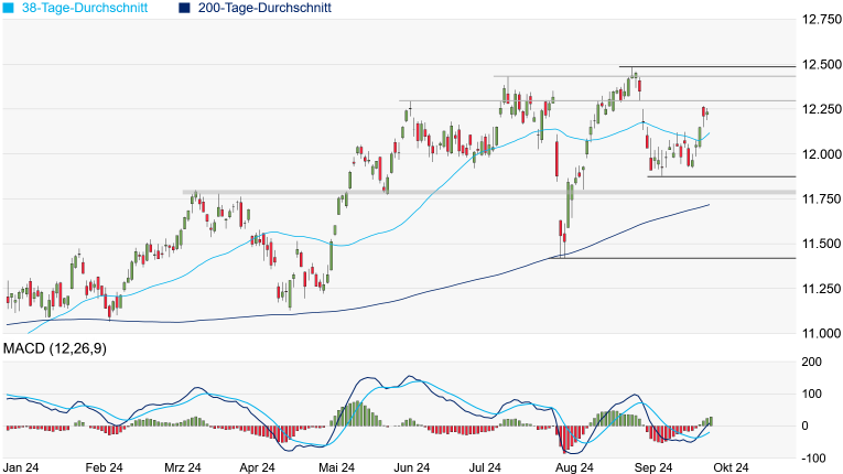 Quelle: Bloomberg. Bitte beachten Sie, dass aus der Wertentwicklung in der Vergangenheit nicht auf die zukünftige Wertentwicklung geschlossen werden kann. | | Charttechnik: Während zahlreiche Indizes nahezu täglich neue Rekordhöhen erreichen, hinkt der SMI doch deutlich hinterher. Das Rekordhoch vom Januar 2022 bei 12.997 Punkten ist noch relativ weit entfernt. Selbst bis zum Jahreshoch vom August bei 12.484 Punkten ist es noch ein Stück. Zuvor würden sich mit dem Juni-Hoch bei 12.295 Punkten und dem Juli-Hoch bei 12.434 Punkten noch zwei weitere Hindernisse in den Weg stellen. Der Start in die neue Handelswoche dürfte zunächst jedoch etwas holpriger