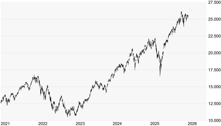 Der Höhenflug an den US-Börsen setzte sich auch am dritten Handelstag des neuen Jahres fort. So kletterte etwa der Leitindex Dow Jones gestern abermals auf ein Rekordhoch und näherte sich weiter der runden 50.000-Punkte-Marke. Kräftig aufwärts ging es auch für den marktbreiten S&P 500 und den technologielastigen NASDAQ-100 - neue Rekordhöhen blieben hier jedoch aus. Für den NASDAQ-100 ging es letztlich jedoch um 238 Punkte oder 0,94 Prozent auf 25.640 Punkte aufwärts. Angeschoben