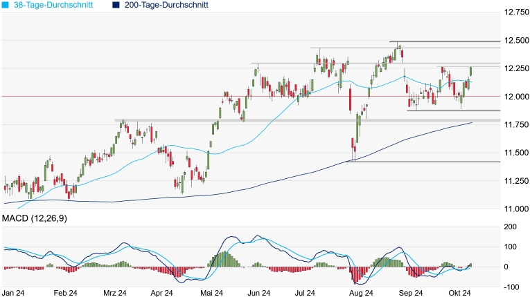 vielversprechend - der SMI könnte bereits oberhalb des Juni-Hochs in den Handel starten. Die Berichtssaison nimmt jedoch erst noch Fahrt auf und kann durchaus auch negative Impulse liefern. Der SMI hat sich zuletzt jedoch von seinem aktuell bei 12.131 Punkten verlaufenden 38-Tage-Durchschnitt entfernt. Bis zur psychologisch wichtigen 12.000er-Marke ist sogar noch mehr Platz.