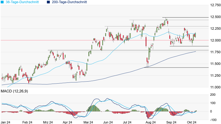 12.484 Punkten wieder in den Fokus rücken. Auf der Unterseite hat sich der SMI wieder etwas Luft verschafft. Selbst wenn die psychologisch wichtige 12.000er-Marke erneut unterschritten wird, das Chartbild würde sich erst bei einem Unterschreiten des September-Tiefs bei 11.878 Punkten wieder etwas gravierender eintrüben.