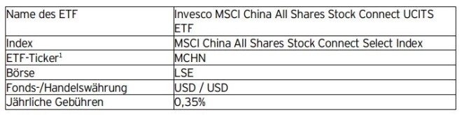 Invesco hat die Auflegung seines MSCI China All Shares Stock Connect UCITS ETF bekanntgegeben, der Investoren eine einzigartige Anlagemöglichkeit bietet. Der ETF zielt auf die breitestmögliche Abdeckung der chinesischen Aktienmärkte und die bestmögliche Abbildung der chinesischen Wirtschaft ab.