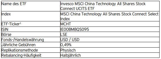 Invesco gibt die Auflegung seines MSCI China Technology All Shares Stock Connect UCITS ETF bekannt. Der neue ETF bildet einen Index nach, der auf einer fortschrittlichen Definition von Technologie basiert und Zugang zu innovativen, technologieorientierten chinesischen Firmen aus einem breiten Spektrum von Branchen bietet, den Fokus also nicht nur auf Computer-Hardware und -Software legt.
